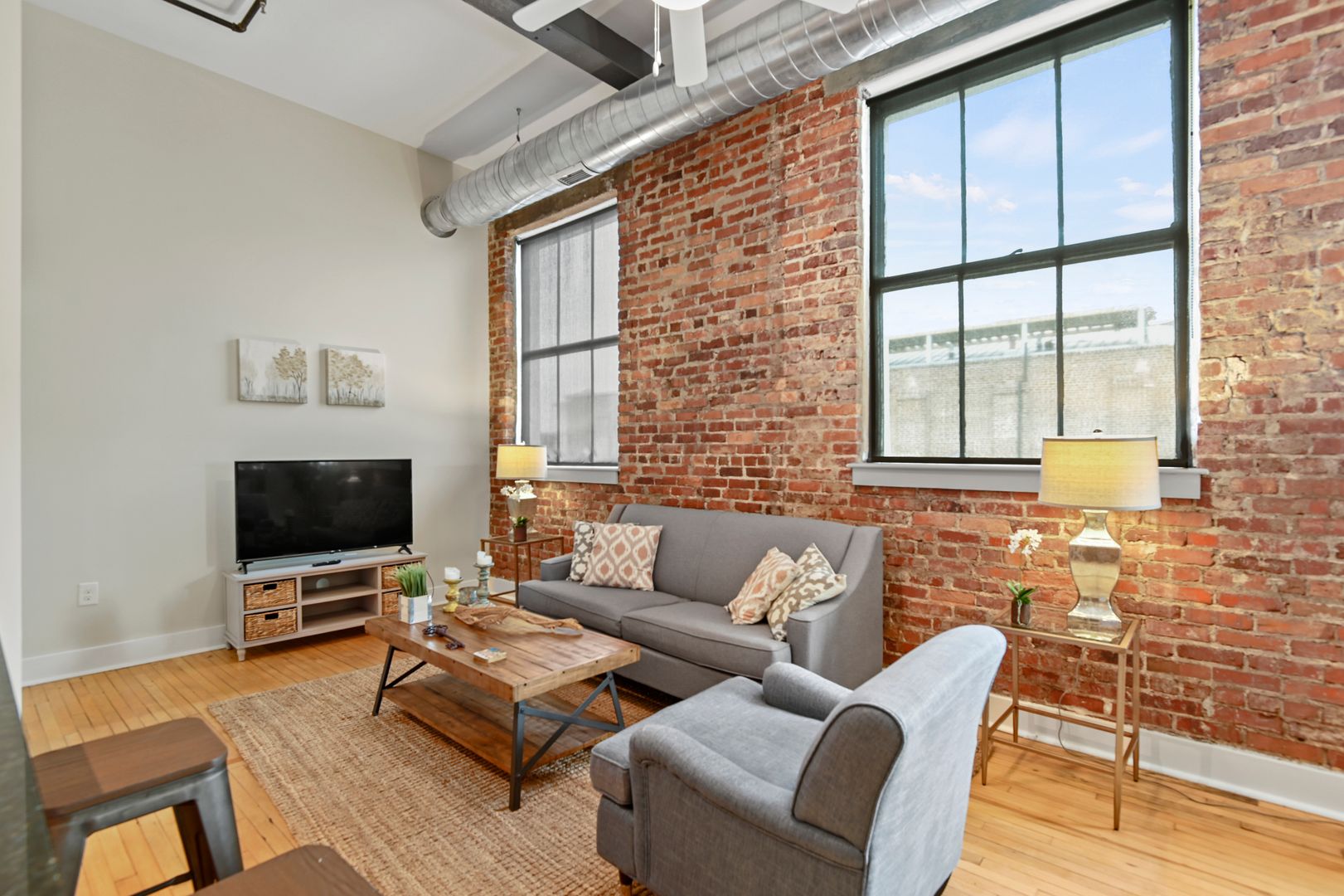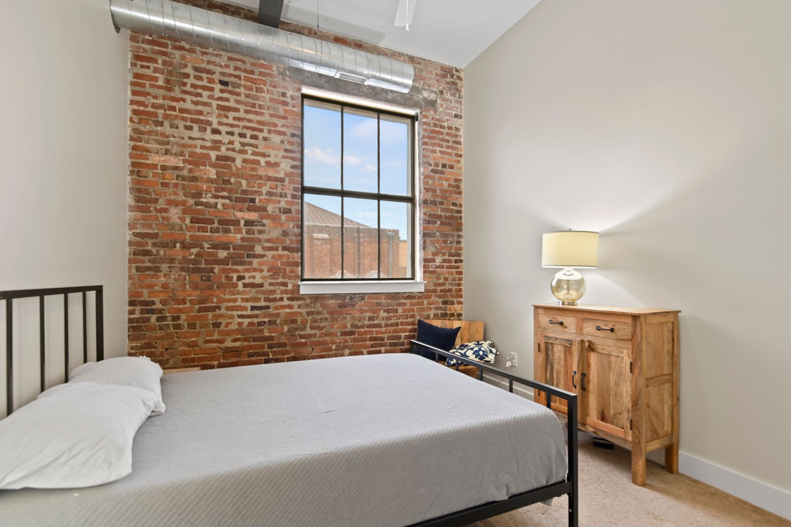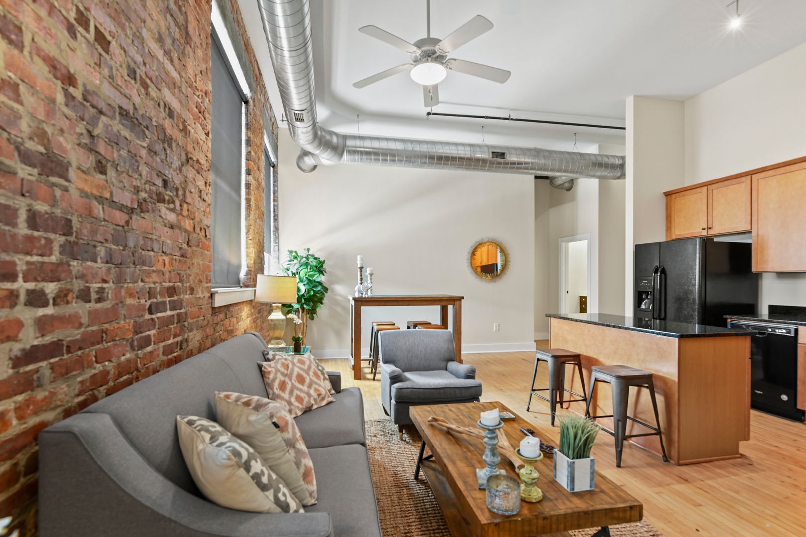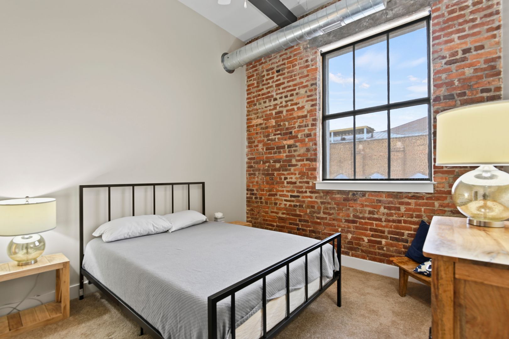 This large two bedroom, two bath residence features a private primary suite and showcases original hardwood floors in the master bedroom and open-concept kitchen/living area. Massive vintage 1920s steel-frame windows flood the space with natural light, highlighting the unique character of this beautifully restored home.