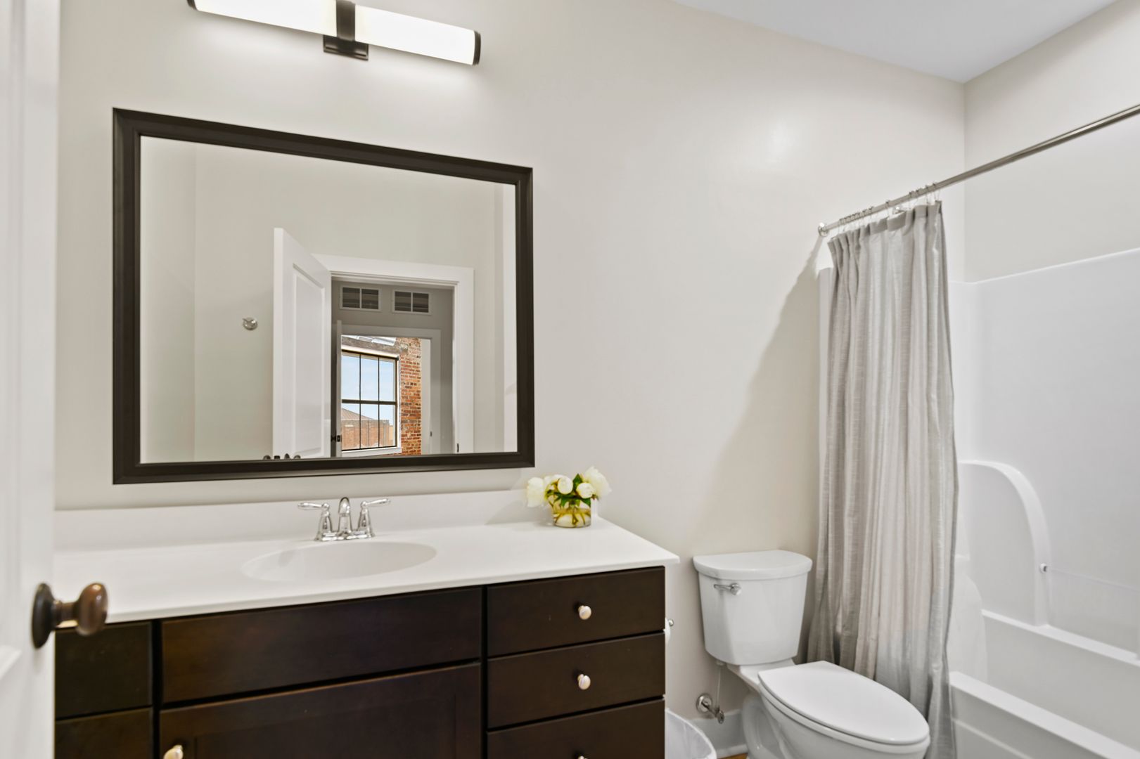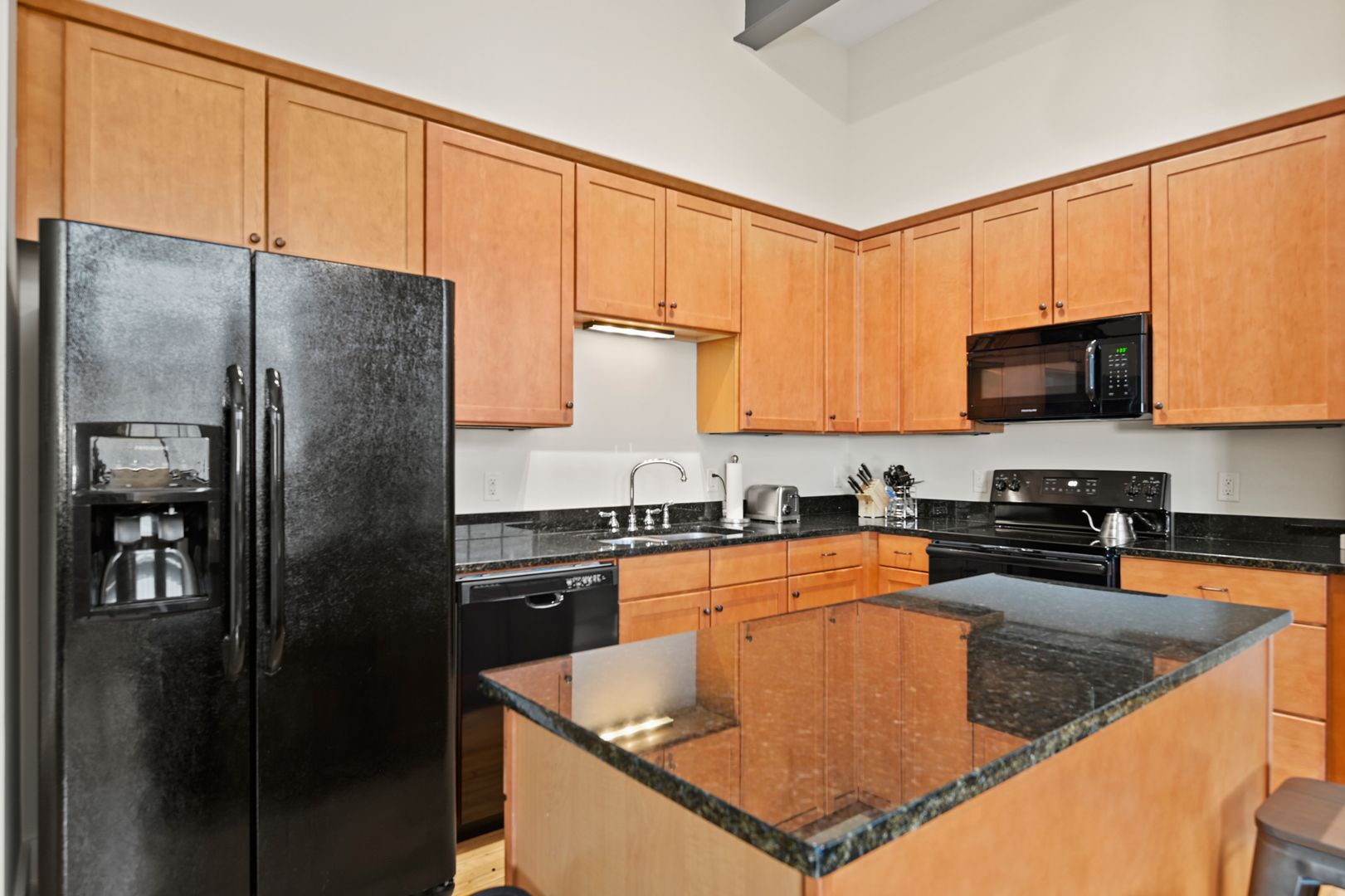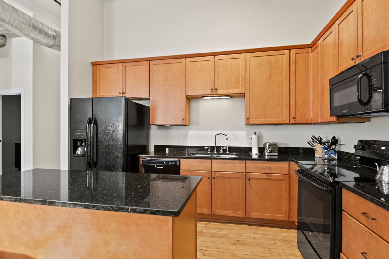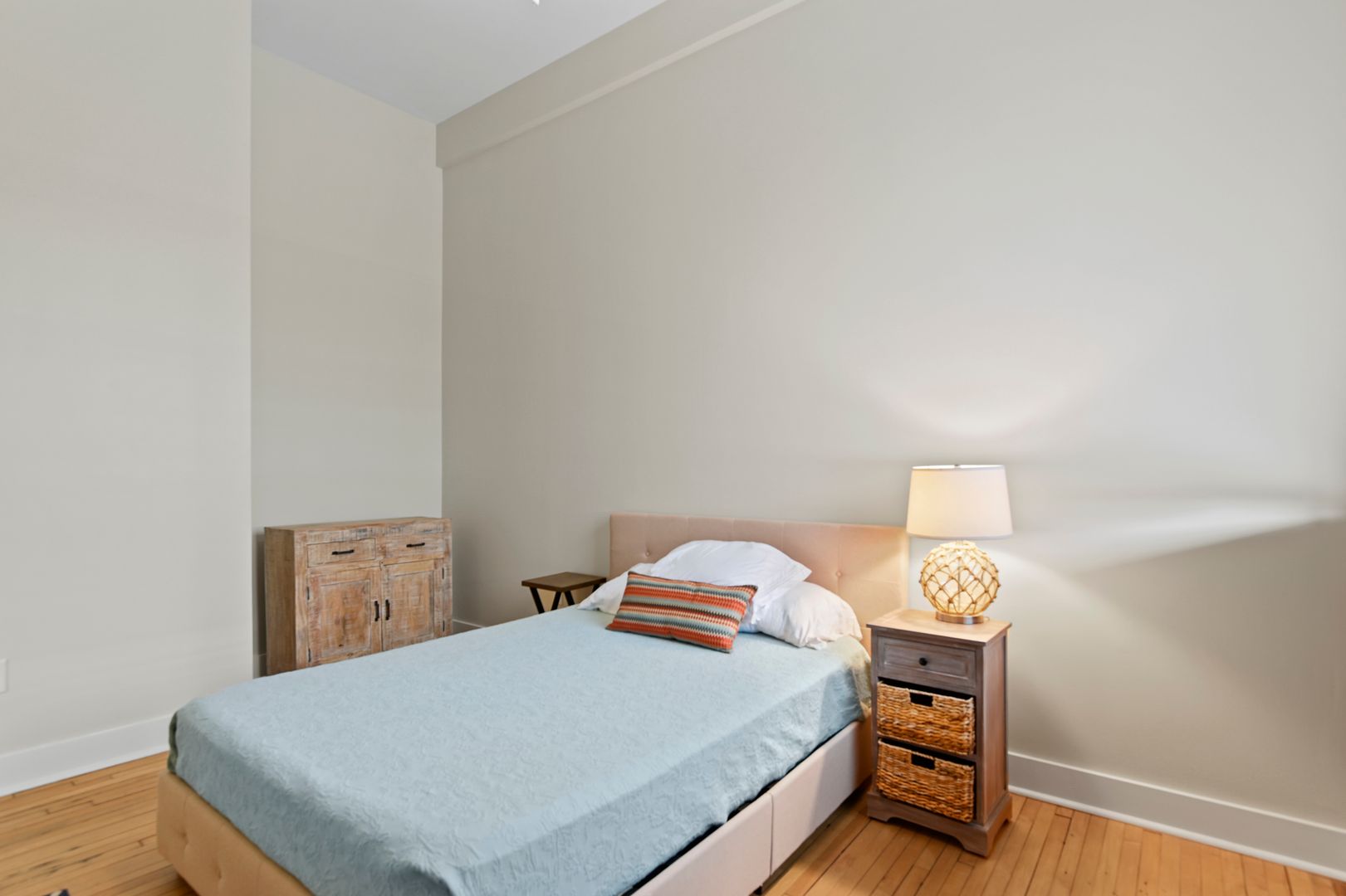 This large two bedroom, two bath residence features a private primary suite and showcases original hardwood floors in the master bedroom and open-concept kitchen/living area. Massive vintage 1920s steel-frame windows flood the space with natural light, highlighting the unique character of this beautifully restored home.